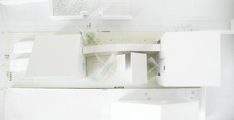 そうすることでできた棟と棟のあいだの外部空間には森が入り込み