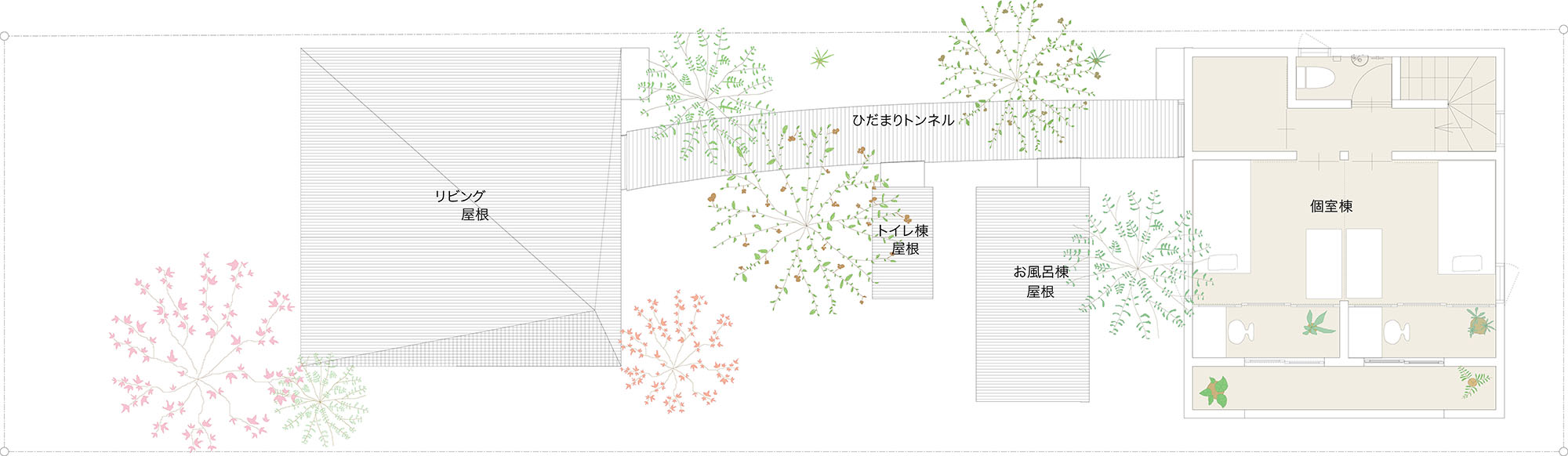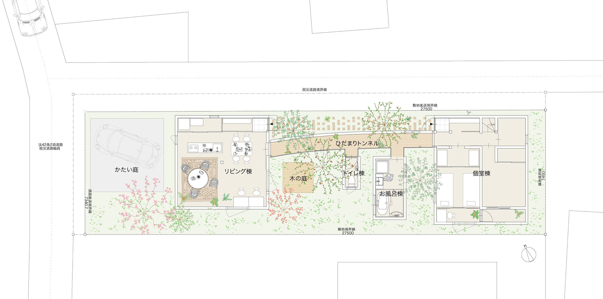 適度な距離感をもって住宅でありながら独立性の高い部屋(=棟)を
