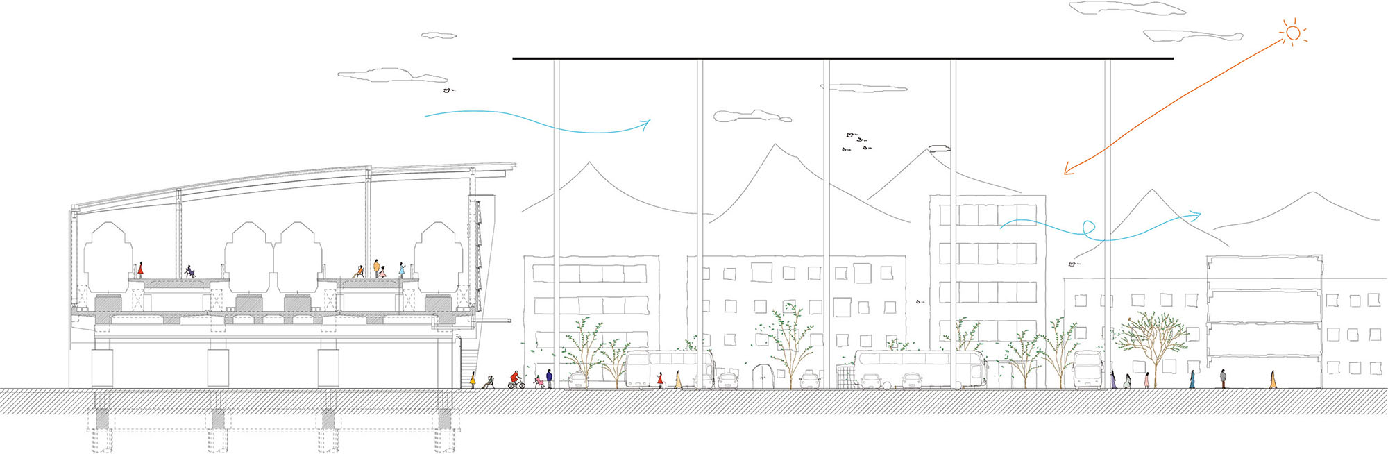 屋外のような屋根の下 - 熊本駅西口広場 実施設計競技