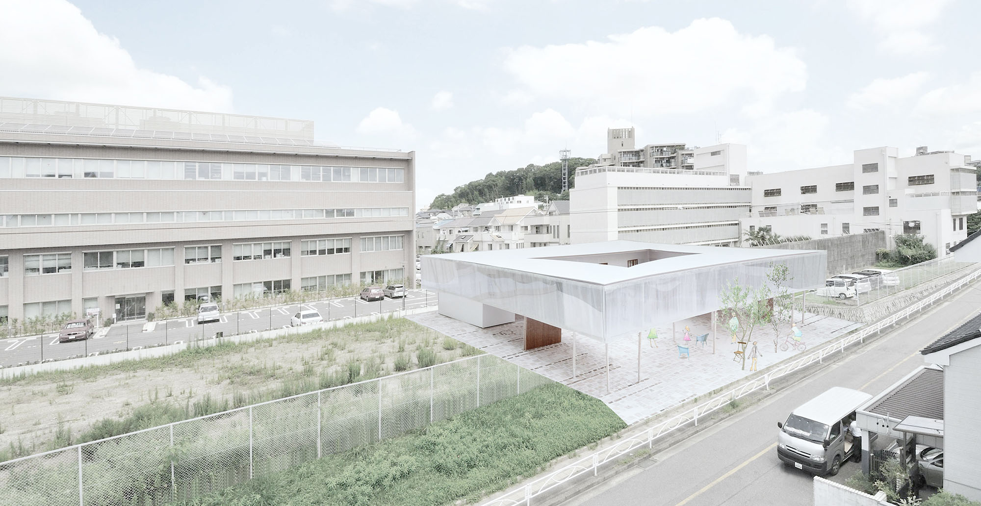 そこで駐車場を含む敷地全体をゆるやかなおかを持つ公園のような造成にし