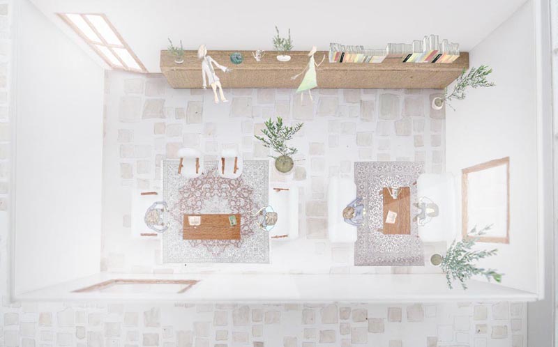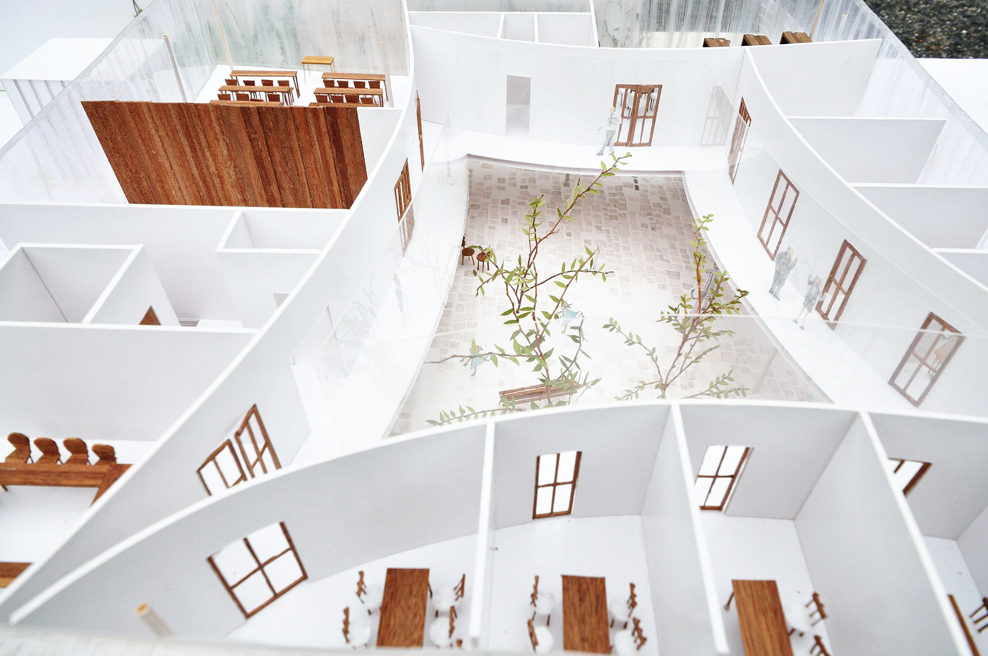 吹抜の向こう側の回廊を通っている人が見えたりすることで