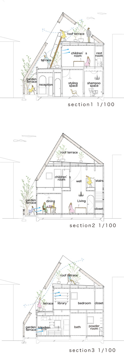 1階に小さな美容室をもつ住宅の計画。
