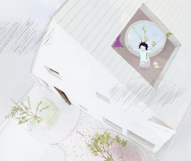 そのような囲まれた状況に対してどのように開放的なスペースがつくれるのかを考え始めた。