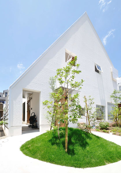 敷地は三方を隣地住宅に囲まれた閑静な住宅地にある。