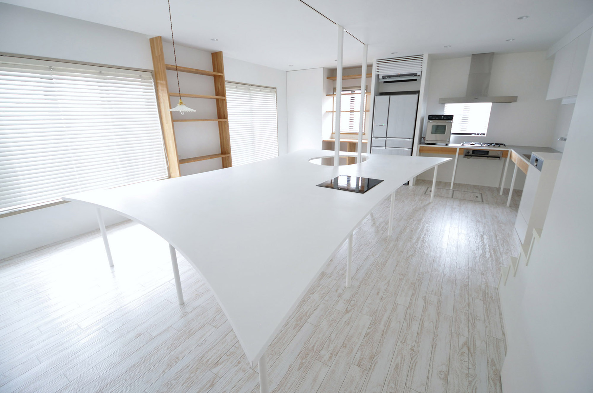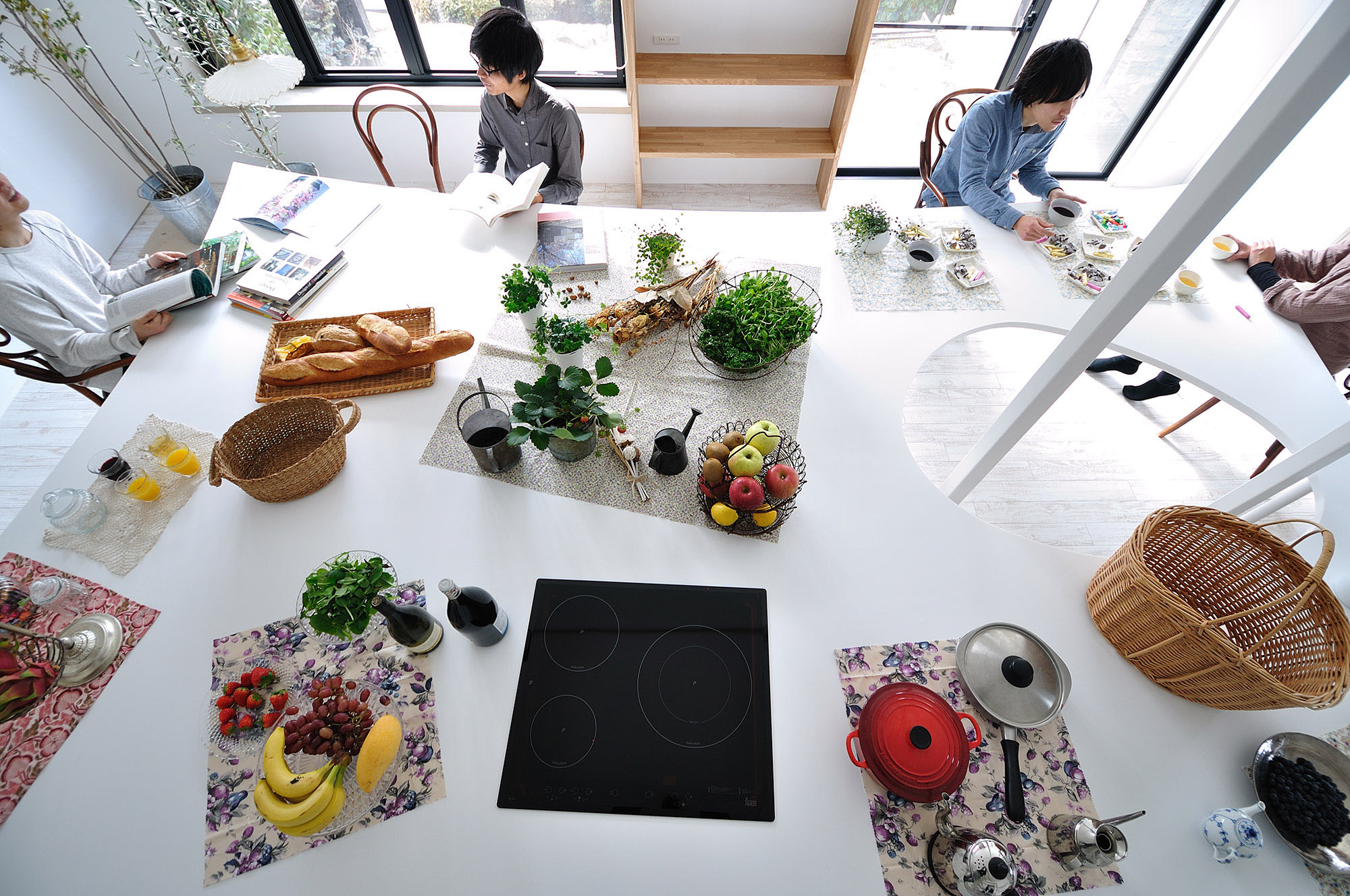 この大きなテーブルによって人やモノを許容していくような環境を目指している。
