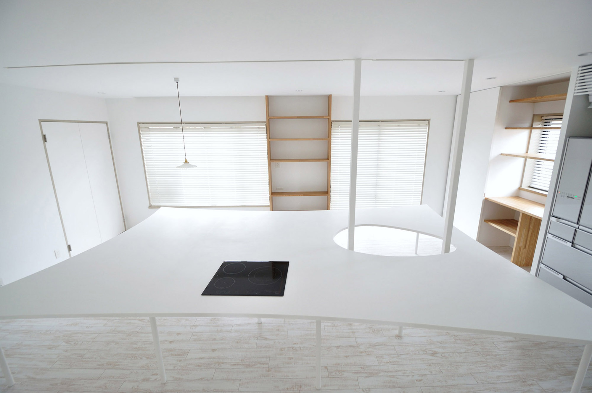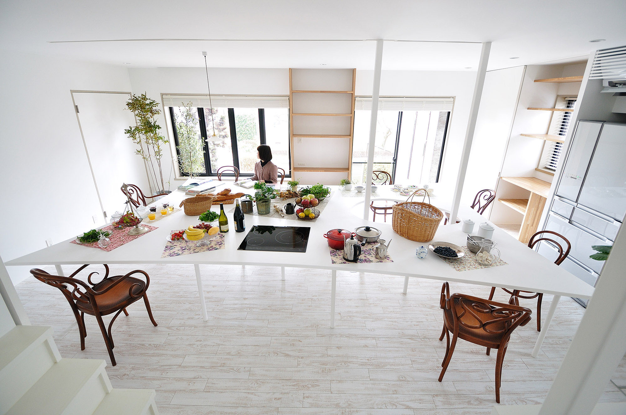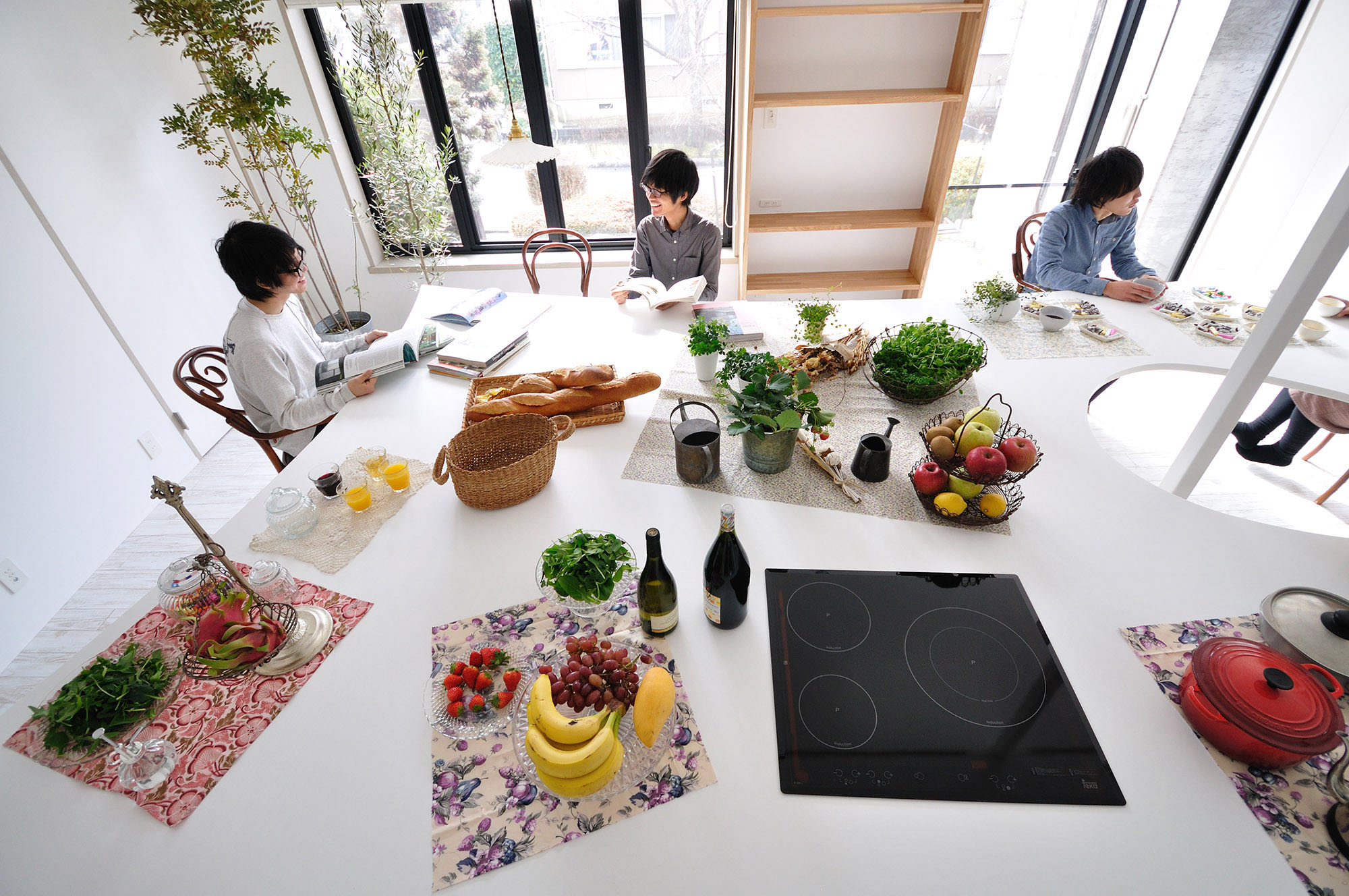 一般的なリビングを料理教室として少しパブリックな機能に開放する計画。