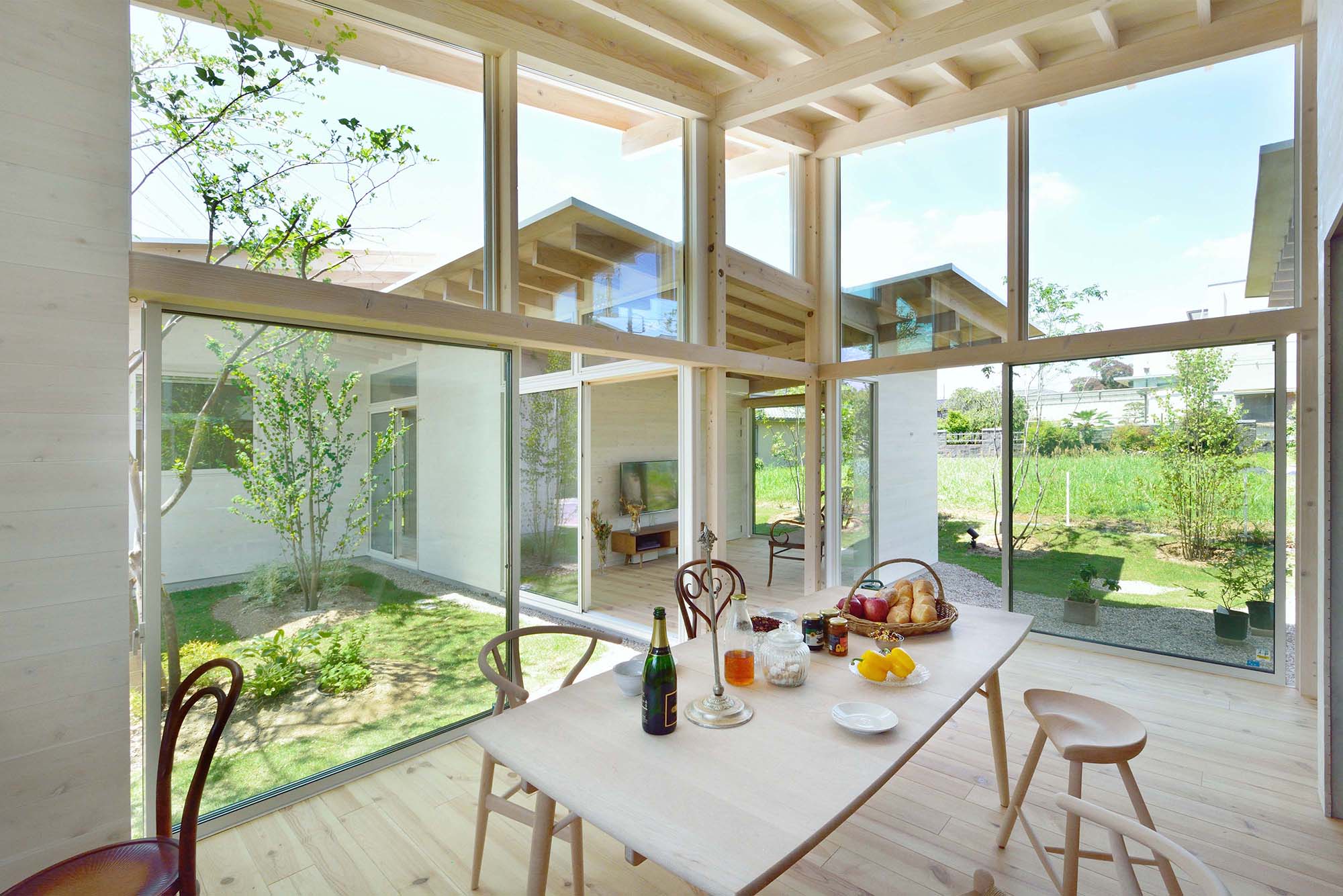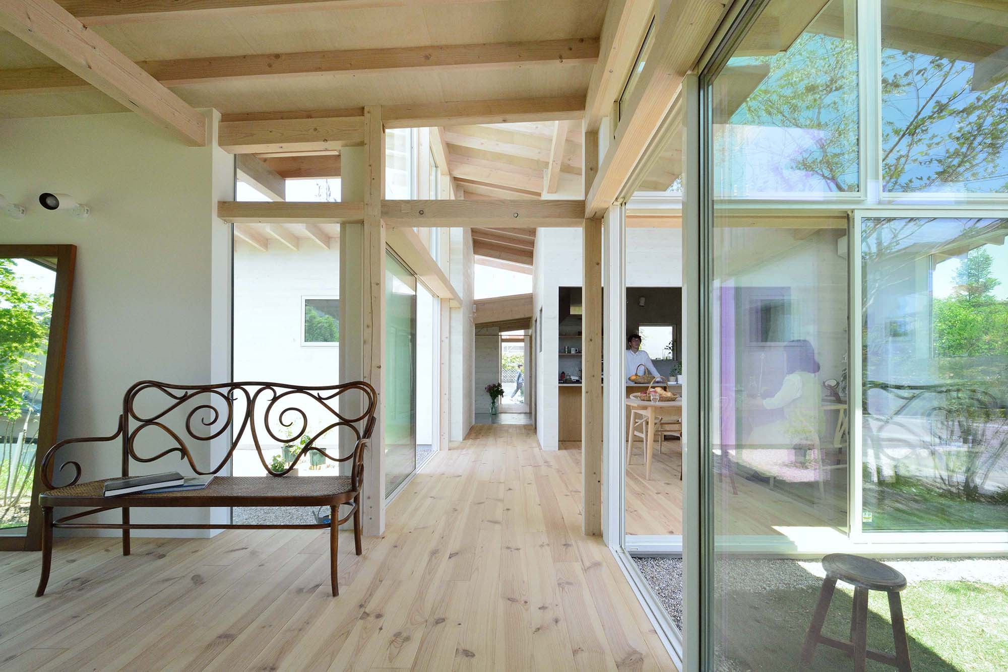 光と風が通り抜けて内部に明るさをもたらしている。
